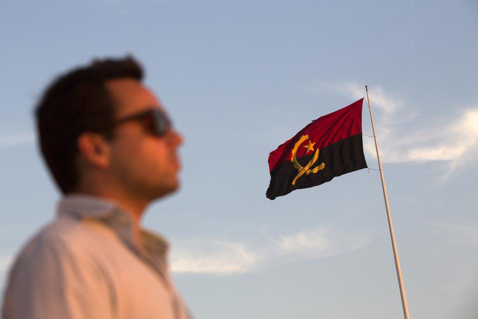 An ex-pat worker stands beneath an Angolan national flag flying at the Army Fort Museum in Luanda, Angola, in 2013. (Photo credit: Simon Dawson/Bloomberg)